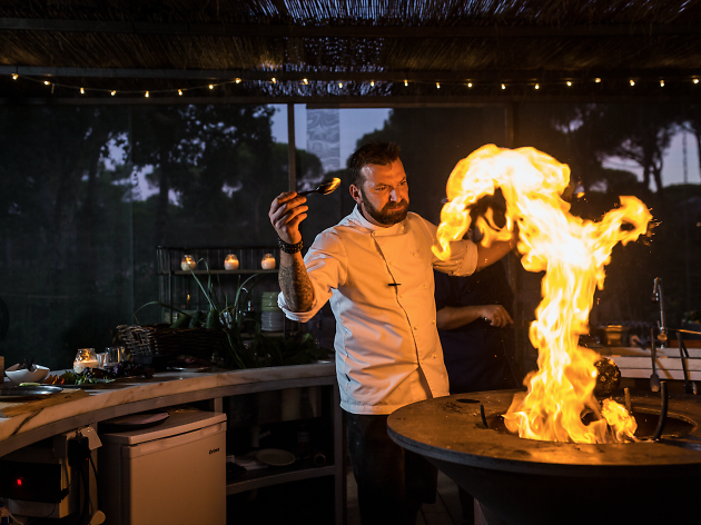 A comida preparada durante 24 horas nas brasas fica a cargo dos Chefs Rock Star Ljubomir